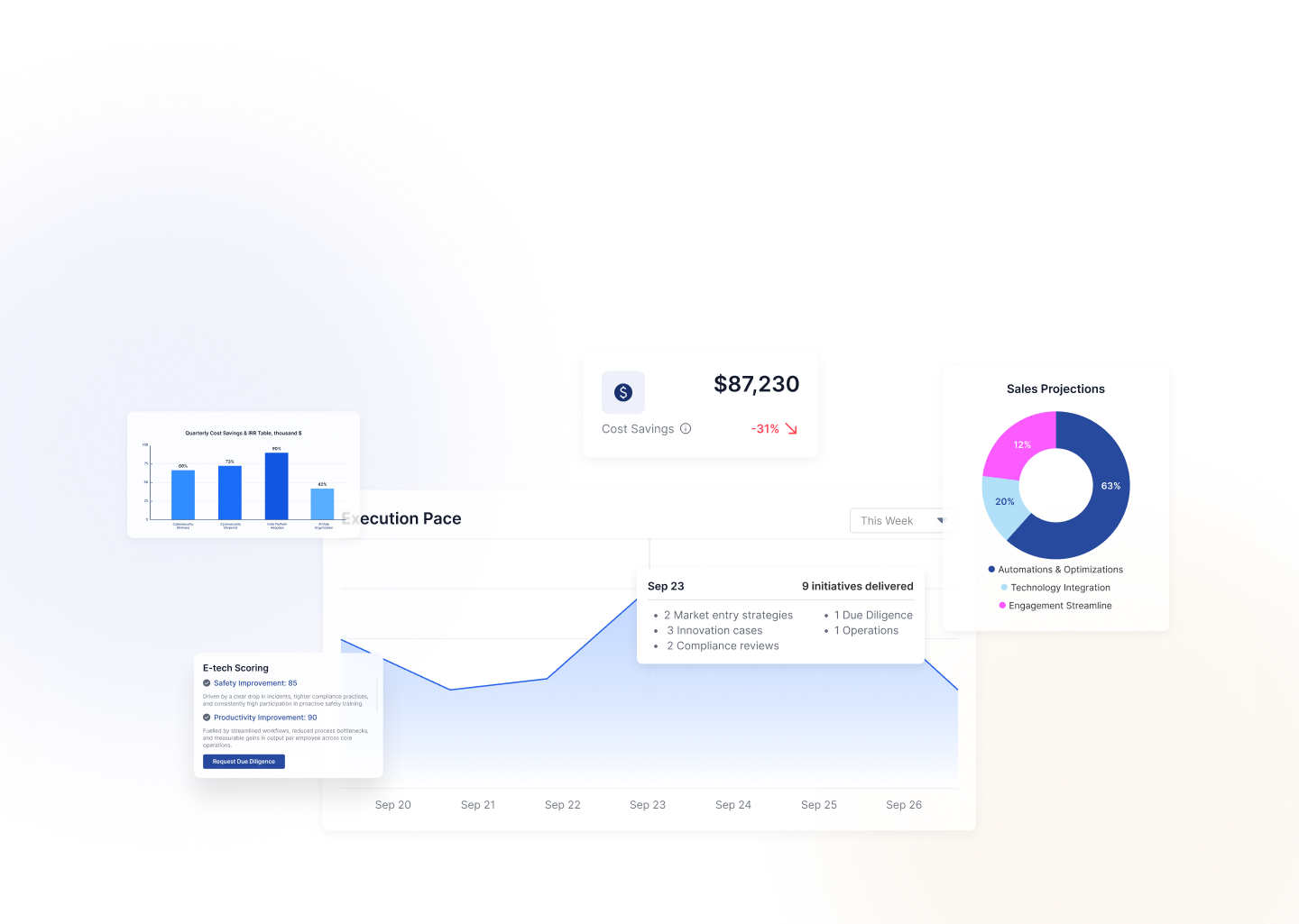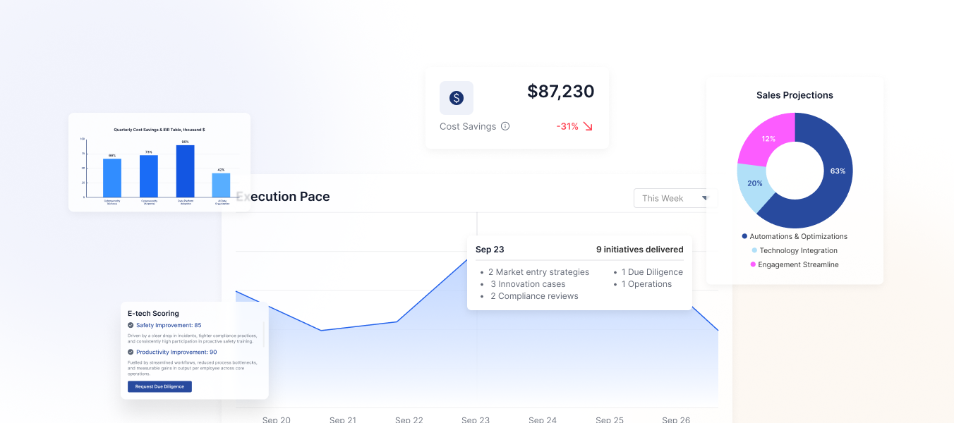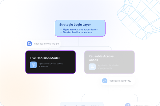 Surface relevant intelligence and generate scenario models. Decision frameworks are built to your specific context, not pulled from a generic library.